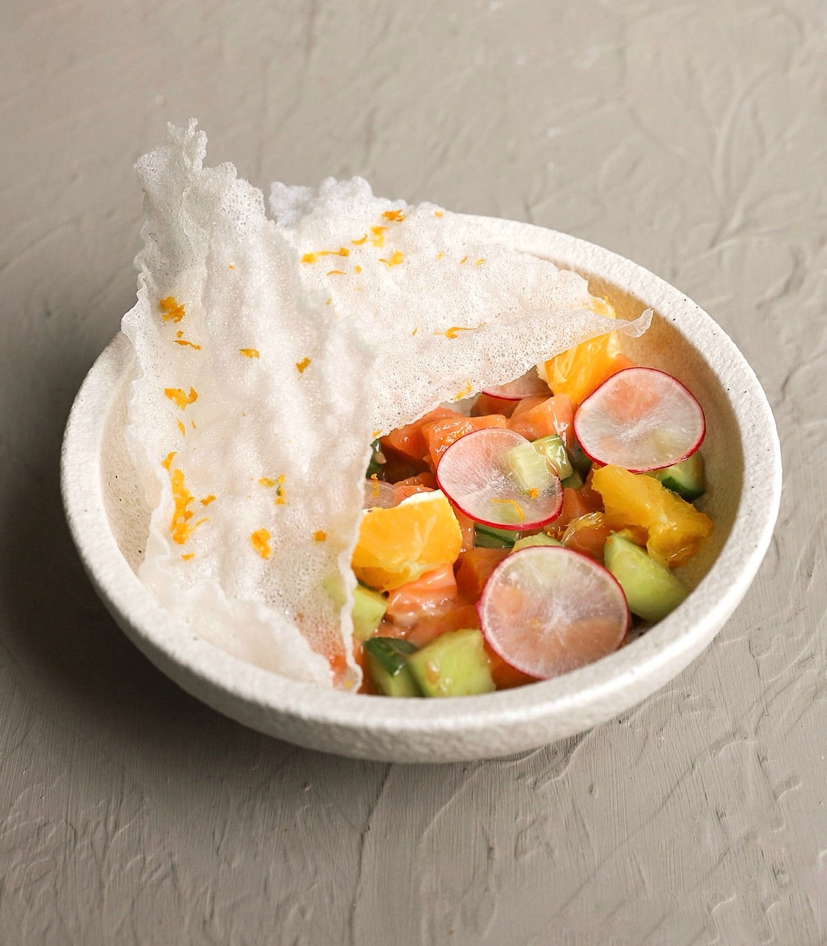 Лосось,огурец свежий,редис,рисовые чипсы,апельсин,сыр творожный,цитрусовый понзу