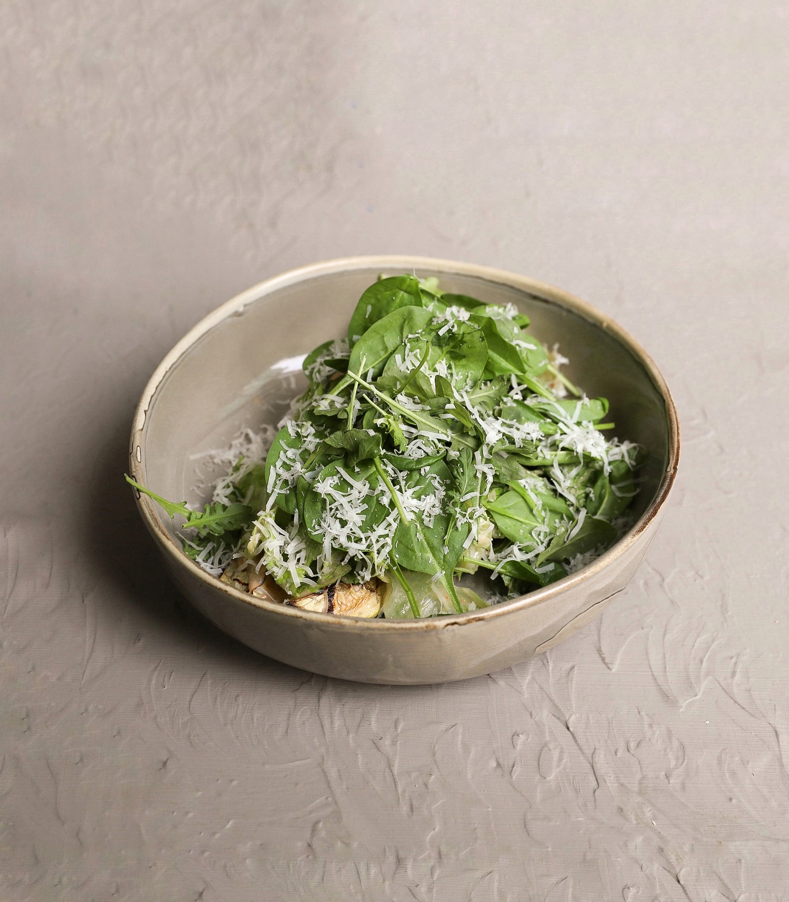 Микс салатов,руккола,шпинат,баклажан,кабачок,томат,пармезан,соус свит чили